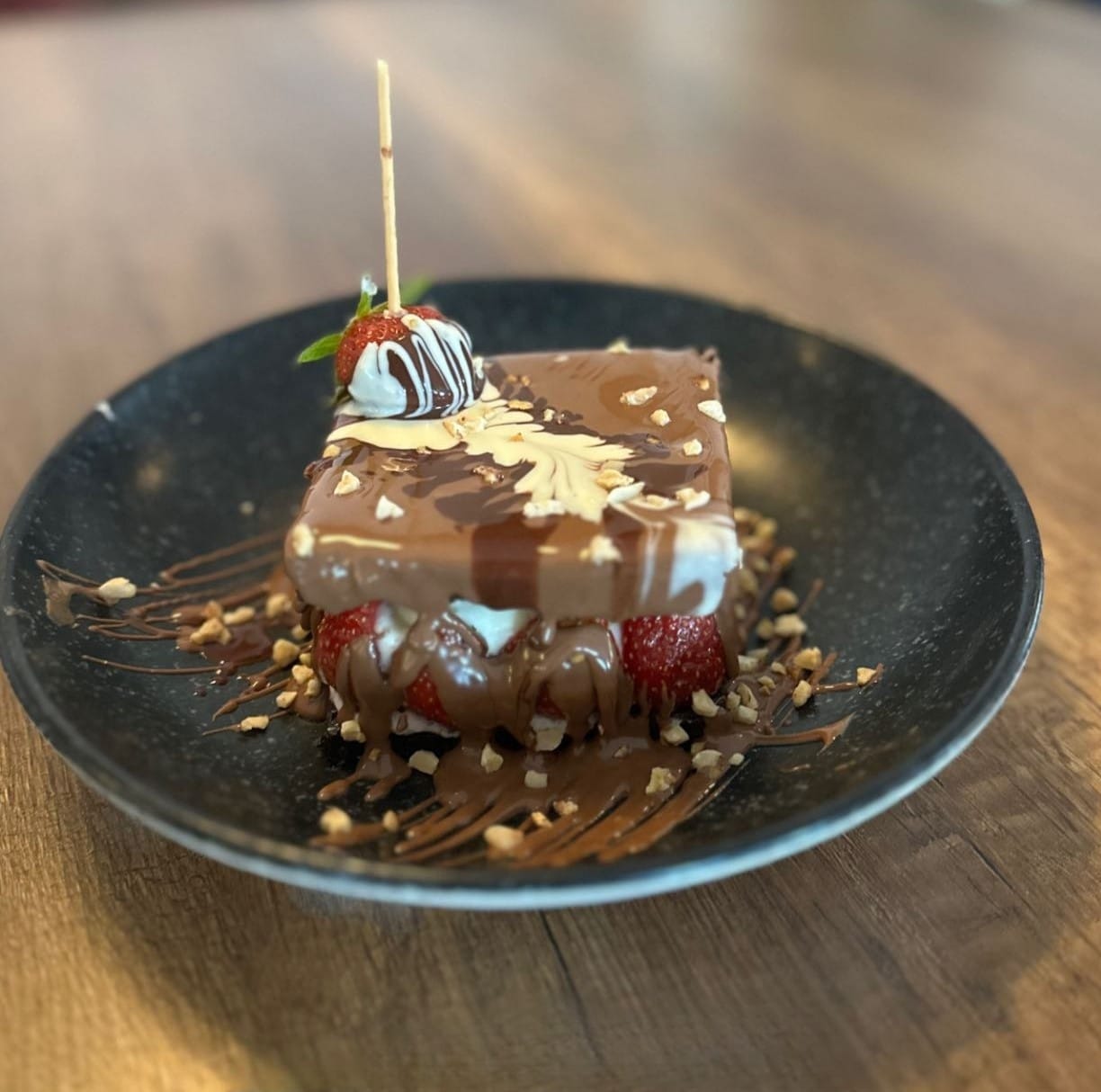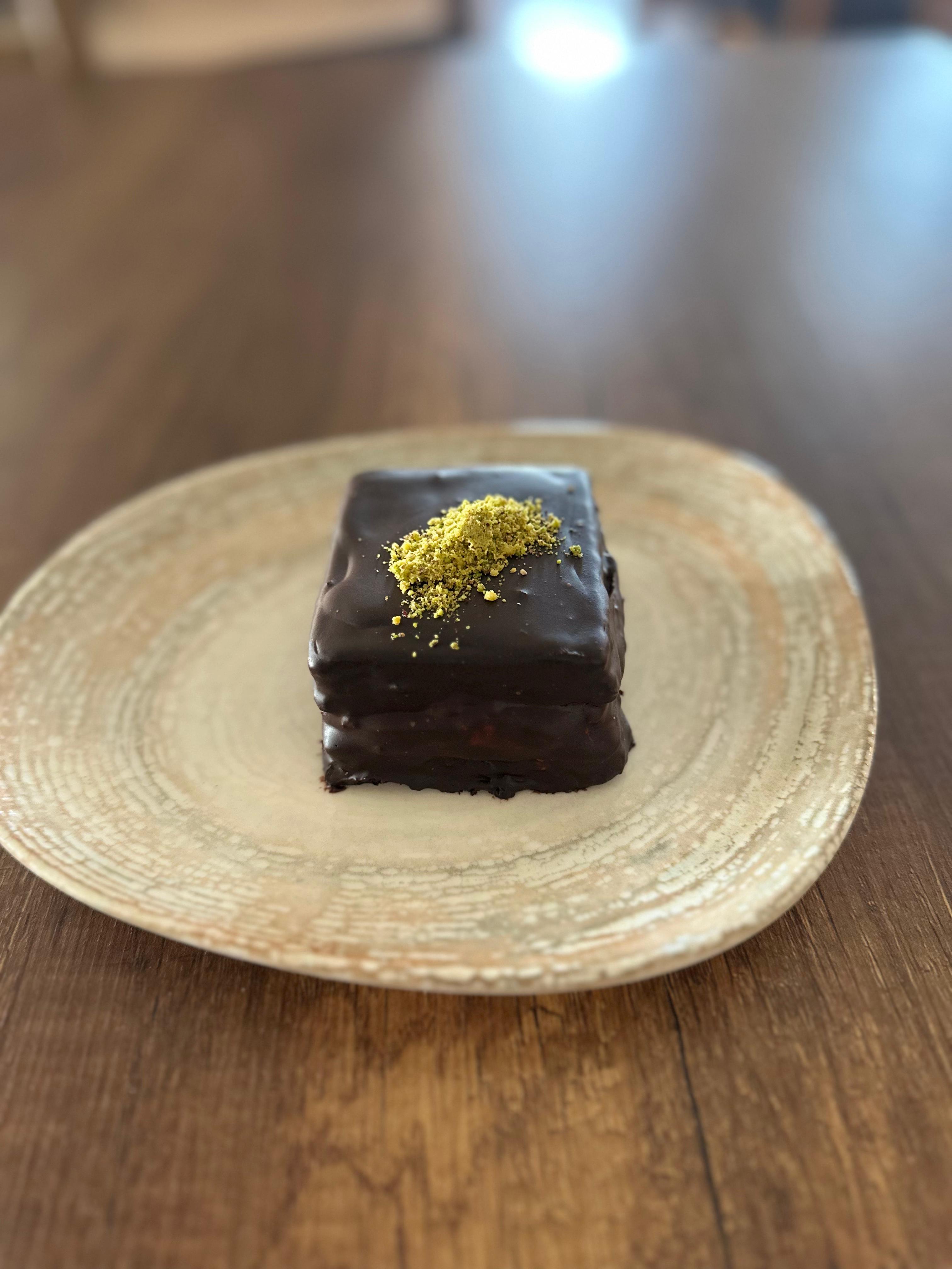 Özel kek tabanlı muzlu ve belçika çikolatası kaplanmış pasta