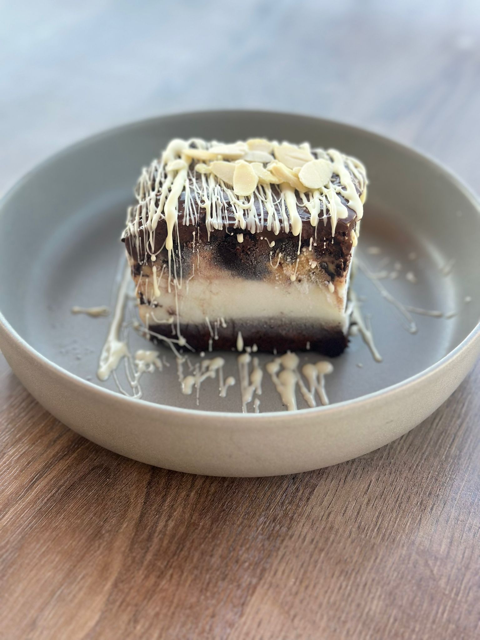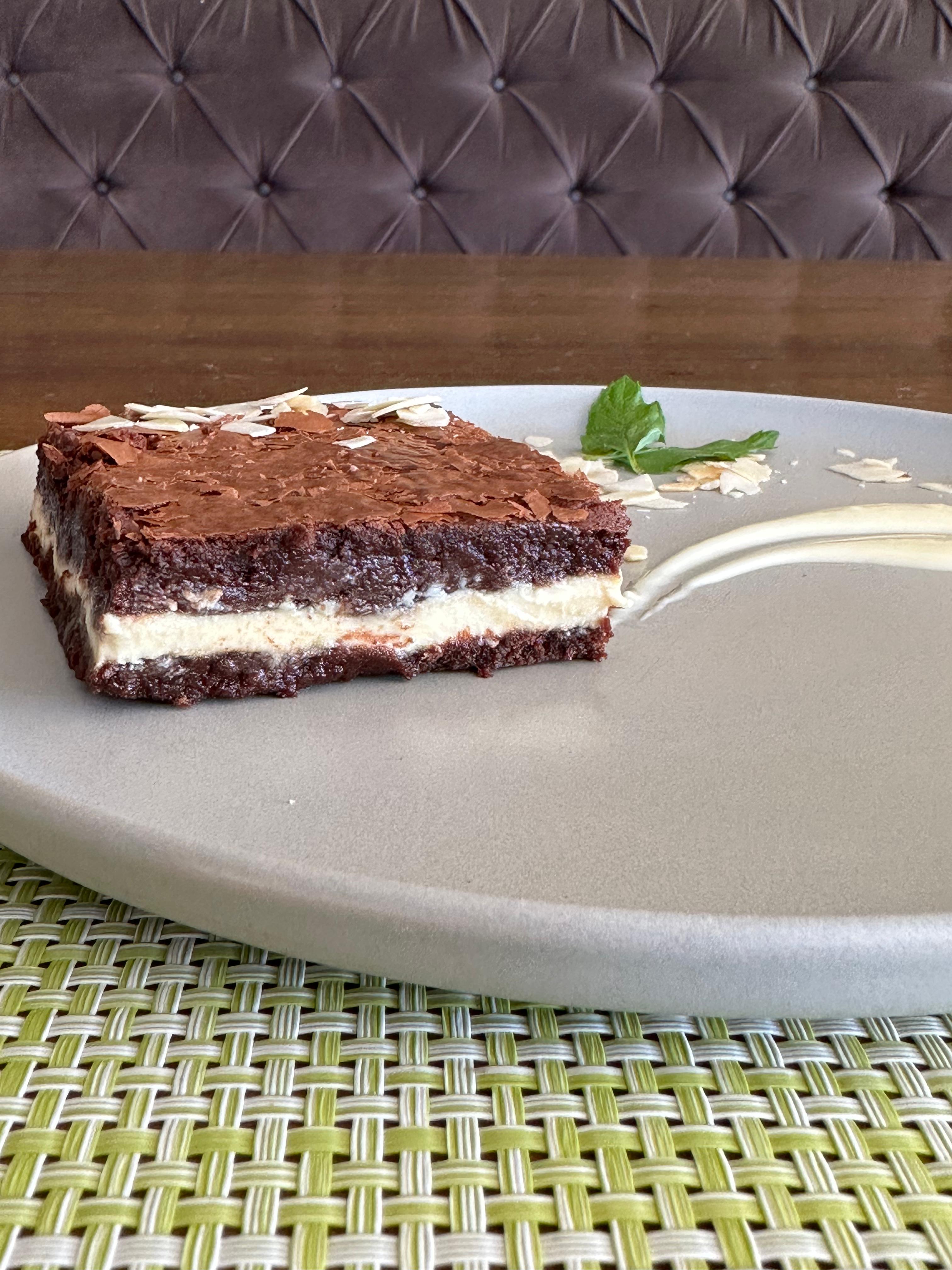 Üç farklı tada sahip brownie tabanlı cheesecake